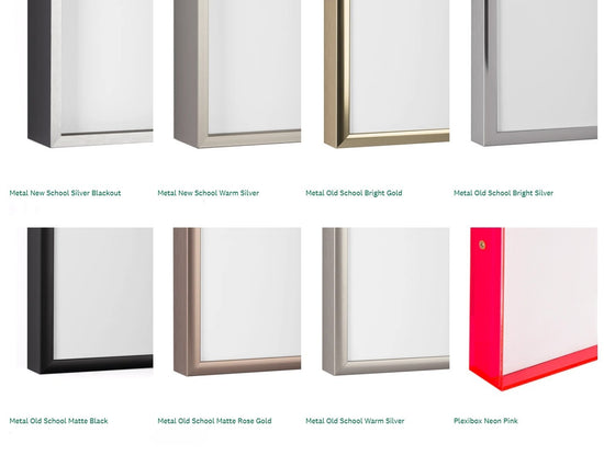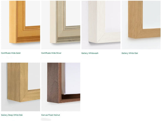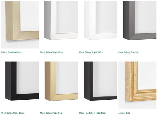 Every framed print is made to order. We work with a leading partner in the industry who has over 100 years of experience to print and frame our art. The highest quality frame moldings, plexiglass, and matboards are used; and they are as beautiful as they are built to last. They're all made and shipped from the U.S. Our paper printing is done using a high-quality printing process specifically for fine art prints using archival paper, known as giclée; and our frames are made from 100% wood or metal. Plexiglass is the industry standard, contains more UV protection, and is both lighter and less breakable when compared to glass. Our special UV plexiglass, which filters ~85-89 percent of UV and 92 percent of light provides even more durability and protection. It is used for the large majority of our art. Custom frames are available upon request for all of our prints, and some can be made to order in different sizes. The specific sizing and customization information for each piece can be found under 'product details' on the item page. The size indicated on the page includes the frame and mat (if any).